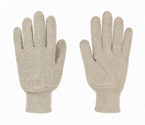 CARACTERISTICAS DEL GUANTE • Tipo toalla color blanco. • Ambidiestro. • Fabricado en 100% algodón. • Resistente y duradero. • Para uso en temperaturas moderadas. • Protección al corte y abrasión moderadas. Puño: Tejido de punto Talla: 9 Material: 100% Algodón Empaque: 120 Pares por caja