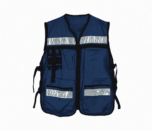 CARACTERÍSTICAS • Diseño tipo brigadista. • Fabricado 100% algodón. • Con cierre frontal. • Cuenta con 4 broches laterales para mejor ajuste. • Bandas reflejantes de PVC de 2”pulgadas de alta visibilidad. • Cuenta con 5 bolsas frontales: 2 con cierre, 1 con broche ajustable, 1 con solapa y otra con portagafete. • Dos presentaciones azul y naranja. Talla: Unitalla Material: Algodón Empaque: 40 piezas por caja