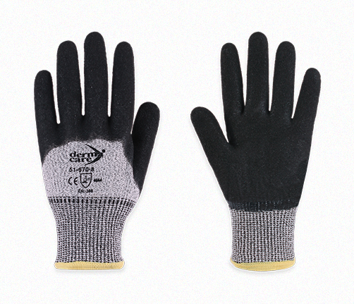 CARACTERISTICAS DEL GUANTE • Acabado especial con canales microscópicos, lo que permite se desvíen los aceites. • Polietileno de alta densidad con fibra de vidrio que da resistencia al corte nivel 5. • Alta resistencia a pinchaduras, algunos procesos de corte y abrasión. Puño: Tejido de punto Talla: 7,8,9 Material: Polietileno AD / Fibra de vidrio / Nitrilo Empaque: 144 pares por caja