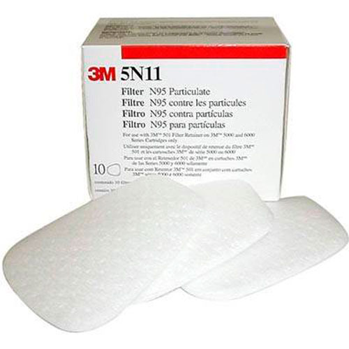 Descripción El prefiltro 3M 5N11 brinda una efectiva e higiénica protección respiratoria contra aerosoles sólidos y líquidos sin aceite. Es fabricado con un Medio Filtrante Electrostático Avanzado, novedoso sistema de retención de partículas que permite mayor eficiencia del filtro con menor caída de presión. El prefiltro 5N11 cuenta con un Medio filtrante antitaponamiento y su novedosa construcción permite la reducción al mínimo del desprendimiento de fibras, logrando excelentes resultados cuando es utilizado en procesos de pintura. Composición Elemento filtrante. Tela no tejida de polipropileno y poliéster. Peso aprox.: 4gms. Color: Blanco. Especificaciones (Características Técnicas) ertificado por el Instituto (NIOSH) de Estados Unidos (National Institute for Occupational Safety And Health) bajo la especificación N95 de la norma 42CFR84. Aprobado para protección respiratoria contra polvos (incluyendo carbón, algodón, aluminio, trigo, hierro y sílice, producidos principalmente por la desintegración de sólidos durante procesos industriales tales como: esmerilado, lijado, trituración y procesamiento de minerales y otros materiales) y neblinas a base de líquidos no aceitosos Usos y Aplicaciones Triturado Lijado Aserrado Carpintería Aplicación Pesticidas Cementos Construcción Minería Alimenticia Pintura en spray