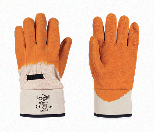 CARACTERISTICAS DEL GUANTE • Guante recubierto de látex en palma y medio dorso con acabado rugoso. • Excelente resistencia a ciertos procesos de corte. • Diseño ergonómico que lo hace flexible y cómodo. • Disponible en puño tejido de punto y puño de seguridad plastificado. Puño: Tejido de punto Talla: 10 Material: Algodón / Látex Empaque: 120 pares por caja