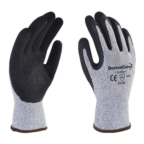 Guante de polietileno de alta densidad fibra de vidrio, puño telido de punto ribeteado, con látex en palma, ofrece excelente agarre en procesos secos o húmedos, es cómodo y muy flexible, excelente opción para trabajos donde se requiera manipular pequeñas piezas