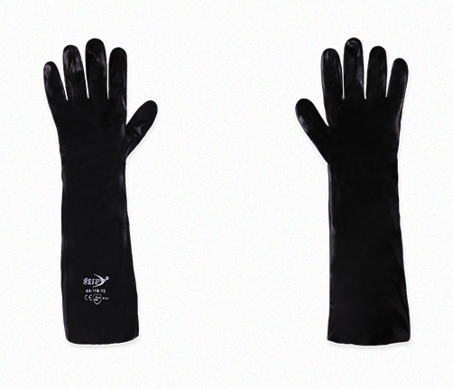 CARACTERISTICAS DEL GUANTE • Excelente protección extra para el antebrazo. • Con inmersión sencilla de color negro y acabado liso. • Contiene un agente fungicida (Sanitized®). Puño: Guanteleta Talla: 10 Material: PVC / Algodón Empaque: 72 pares por caja