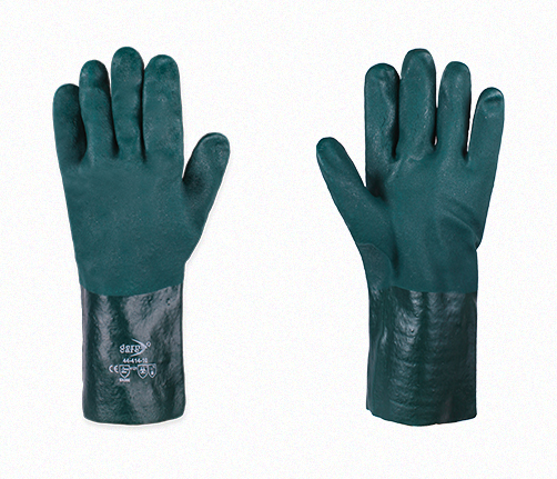 Guante recubierto de PVC y soporte interno de algodón con inmersión doble / 14” de largo 44-414