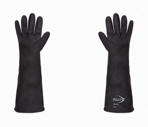 CARACTERISTICAS DEL GUANTE • Guante negro de hule natural sin forro contra ácidos. • Resistente a gran variedad de ácidos y cáusticos. • Protección contra agentes químicos en general. Puño: Rolado Talla: 8,9,10 Material: Látex Empaque: 150 pares por caja